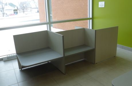 Ameublement de réception Nous fabriquons l’ameublement de réception selon vos besoins en prenant soin de discuter avec vous des détails, du positionnement des appareils et de leur branchement. Nous portons attention à l’ergonomie pour votre confort.